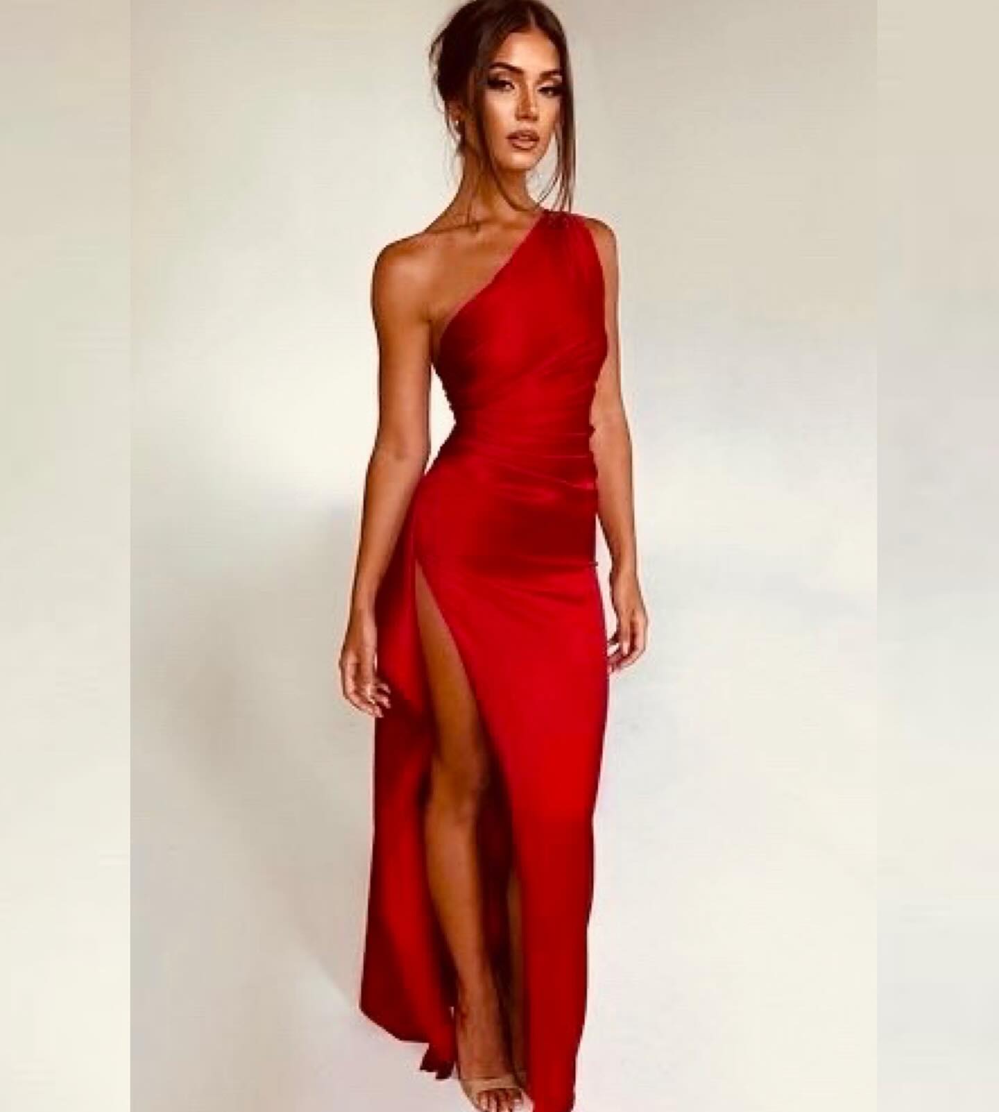 One Shoulder Prom Dress with High Slit Bridesmaid Dress
